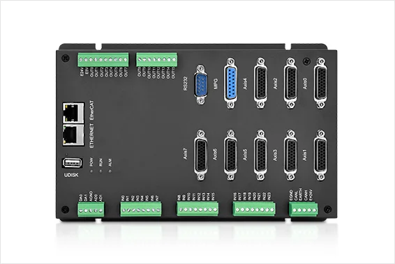 Up to 32-axis motion control (8 pulse axes + ECAT axes/encoder axes/virtual axes, reserve 2 to expand single-ended output axes).
