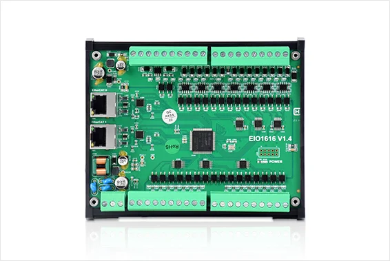 EIO1616 is an EtherCAT expansion module used for EtherCAT controllers, which can expand 16 digital inputs and 16 digital outputs. That is, when more IO resources are needed, EIO1616 can help you. And several EIO1616 modules can be used for one EtherCAT controller. In addition, after IO mapping, IO expansion can be achieved easily.